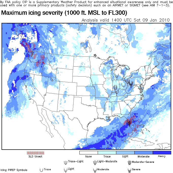 This graphic is particularly alarming: not only does it show the potential for moderate to heavy ice in our area, it even warns of the possibility of SLD (supercooled large droplets). Despite the fact that there is no SIGMET for severe ice published, SLD should always be considered a very serious threat.
