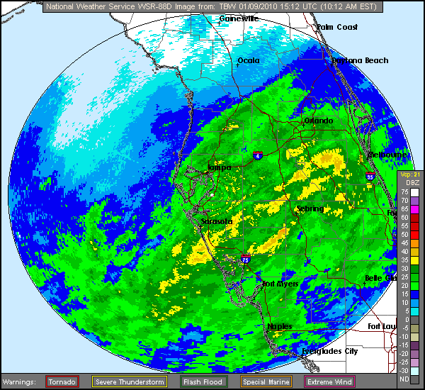Moreover, bands of light but steady rain are still falling across the central part of the state, with isolated pockets of heavier precipitation to the south of Orlando: