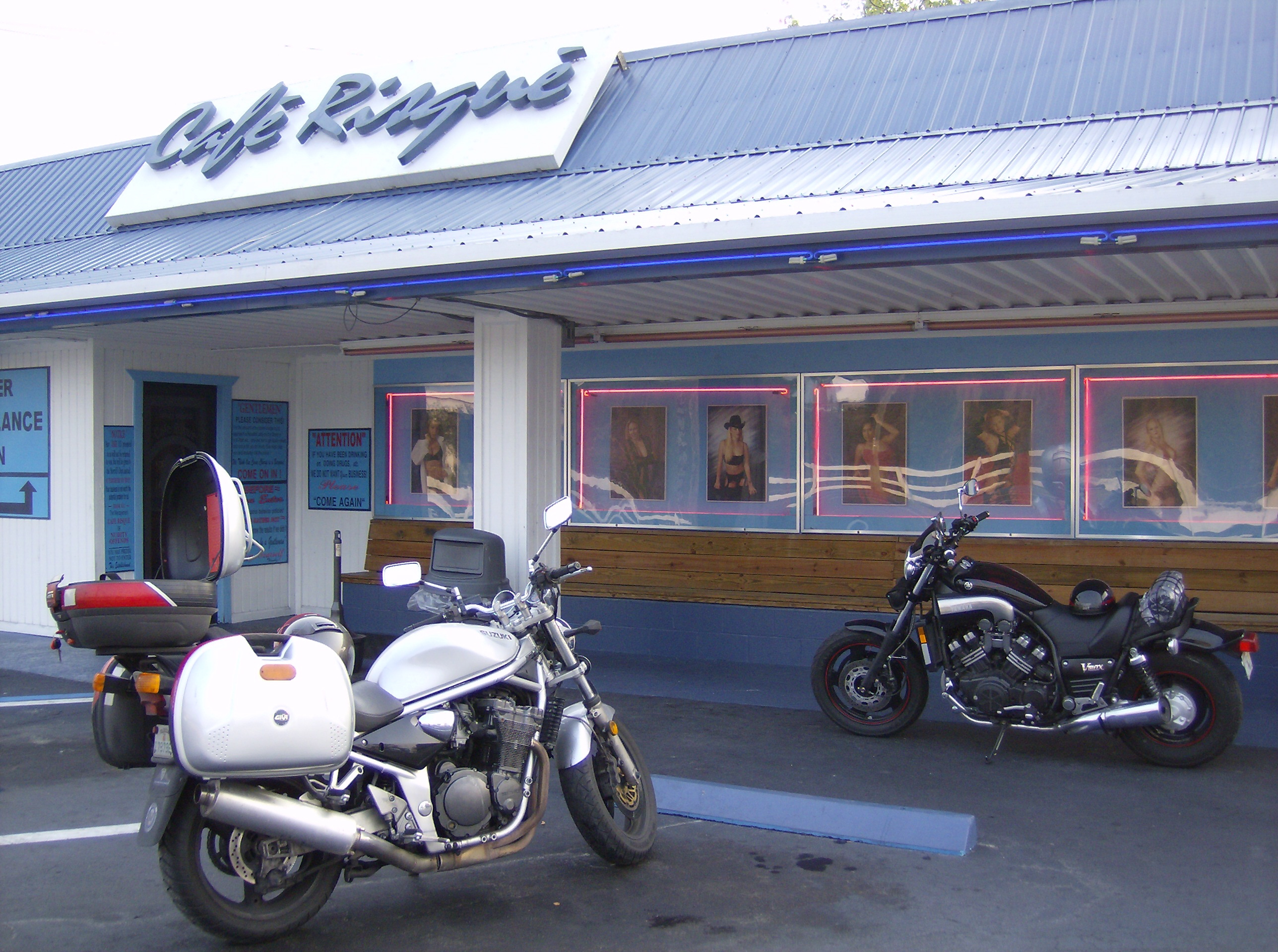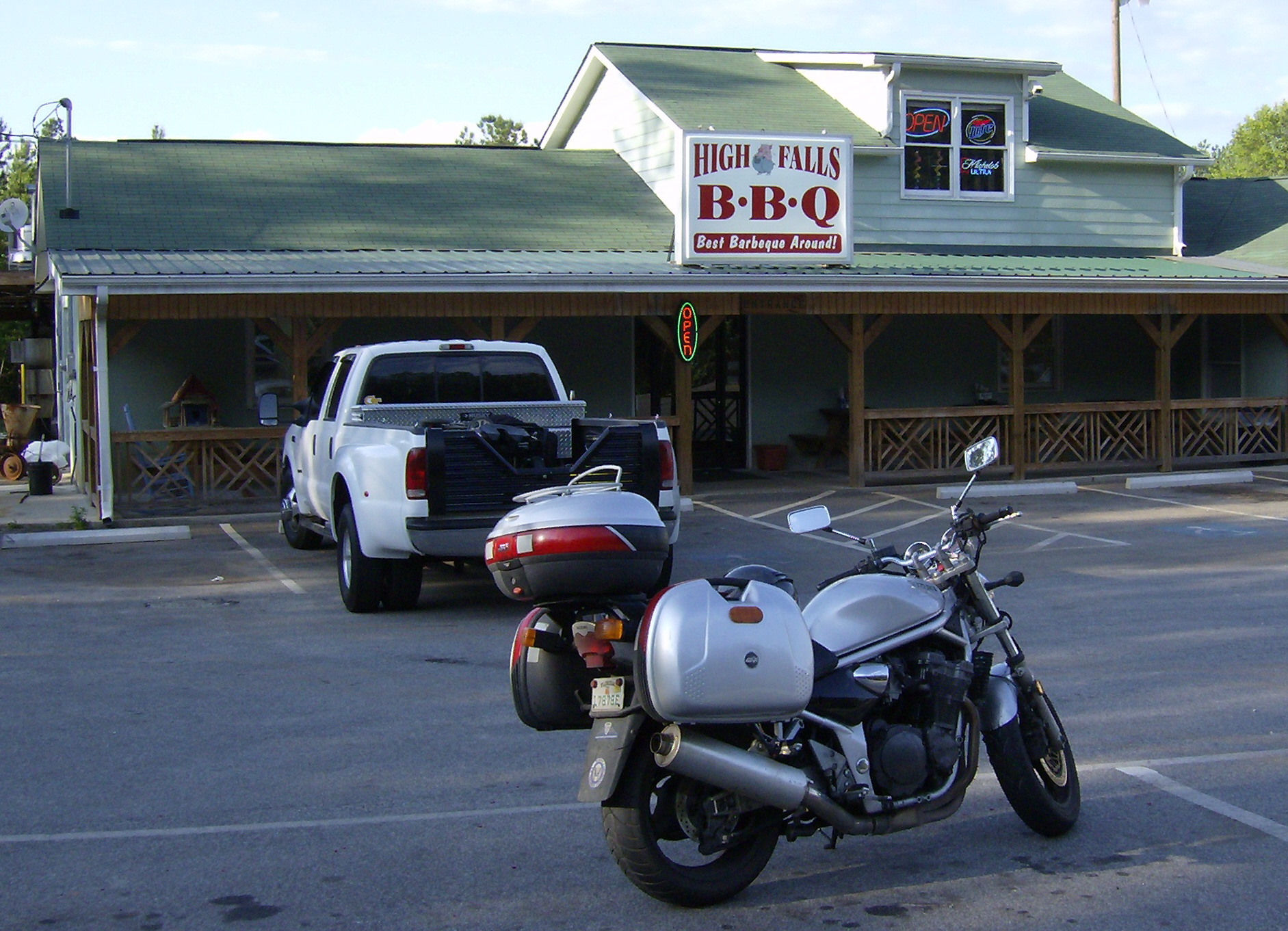 This is definitely a part of the country where there is one and only one socially acceptable motorcycle brand, and it damn sure ain't Suzuki, buddy! There is also a very powerful cultural bias against wearing helmets or any other kind of personal protective gear (other than black studded leather with fringe and big silver buckles). There were a few times that I got the distinct sense that I was an intruder in enemy territory.