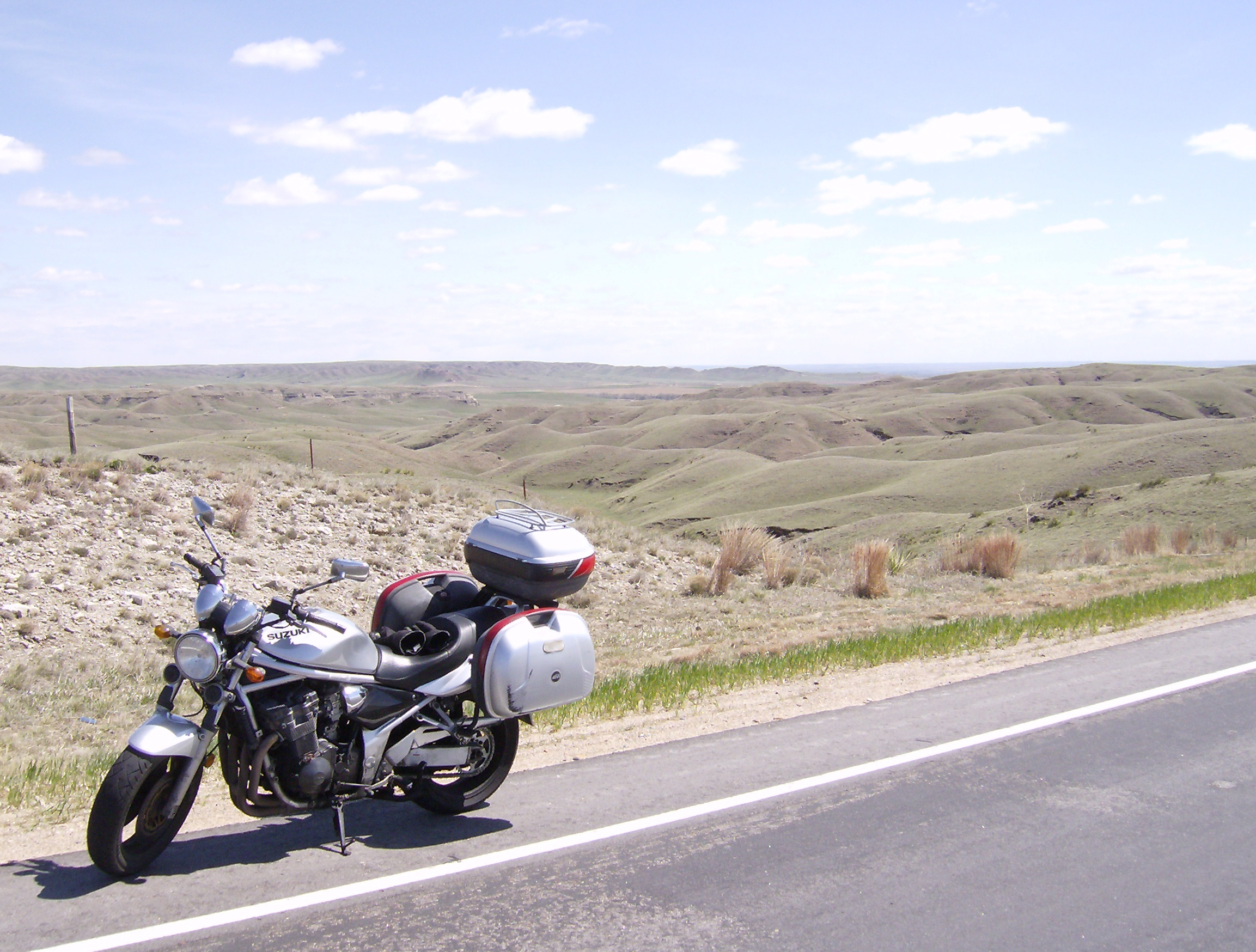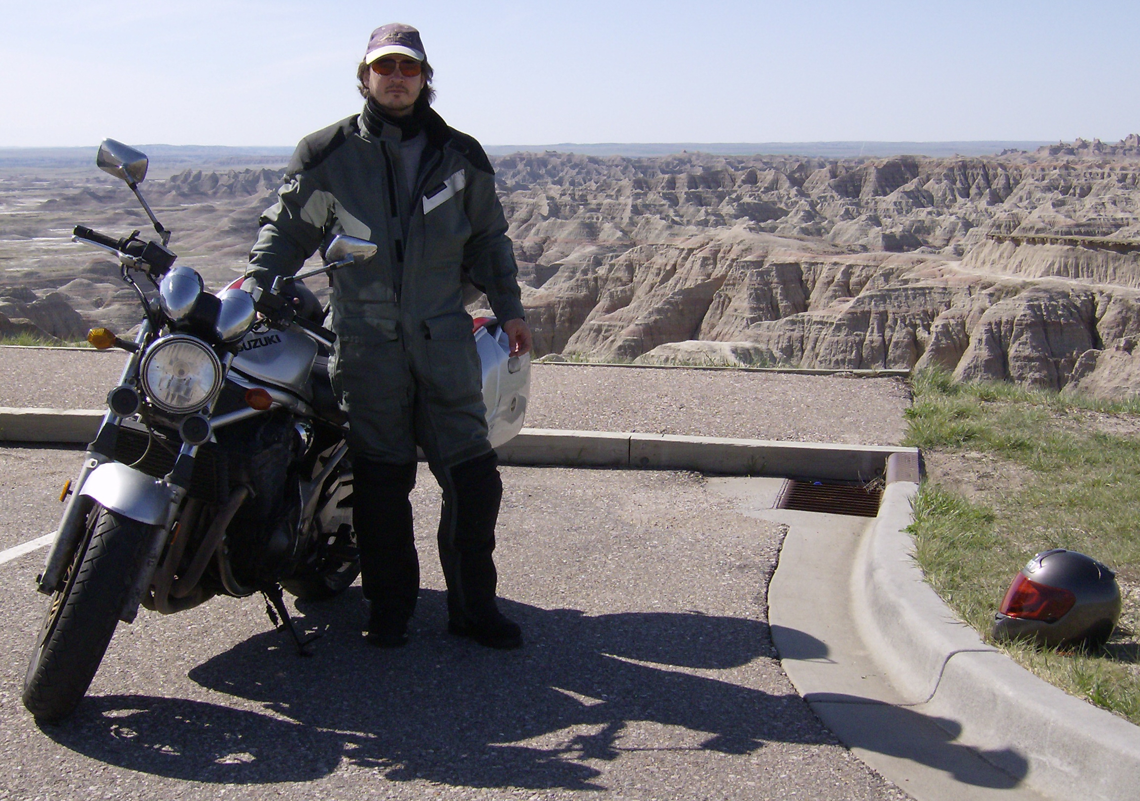 The colorful, rumpled landscapes of South Dakota are extraordinarily beautiful. I found myself humming the theme from Dances with Wolves, which was filmed there. There were times when I could almost forget that it was the 21st century, and pretend that instead of a Suzuki, I was astride a horse, exploring the frontier in the year 1867.