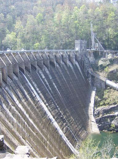 The Tapoco Dam on the Cheoah River (where Harrison Ford jumped to get away from Tommy Lee Jones in the movie The Fugitive) next to US 129 just south of Deal's Gap. I pulled over here to catch my breath after almost being run right off the road by a southbound 18-wheeler taking up both lanes as it came around a tight corner. Probably not quite as exciting as the dam-flinging, but close. (If "to defenestrate" means "to throw someone out a window," what is the word for "throwing yourself from the top of a dam"? It's a curiosity about matters such as these that kept me from ever really going anywhere in life.)
