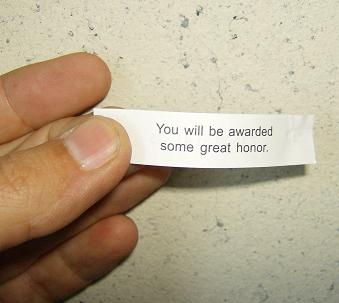 I arrived in Perryville, Missouri and checked into the Comfort Inn at around 5 P.M. I had my usual late lunch / early dinner at the Chinese buffet across the street. (I generally only eat twice a day when I'm on the road.) When I cracked open my fortune cookie, it told me that I would soon be awarded some great honor. I wondered what that might be.