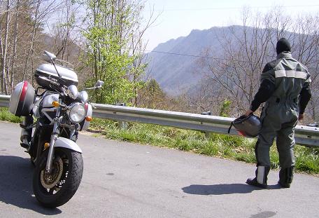 Intelligent layering is the key to comfort on a long motorcycle trip. When I left, for example, I was underdressed. I remedied that when I stopped. Northbound on I-75 through the Gainesville area, I was wearing a long-sleeve T-shirt and two sweatshirts under my riding suit. I was also wearing a balaclava and two neckwarmers, a tight one and a loose one to trap warm air. (The neck is a particularly vulnerable area; that steady, cold windblast under the chin of your helmet can suck the heat right out of your body no matter how snugly your jacket fits.) As the day warmed up, I removed the balaclava, one of the neckwarmers and one of the sweatshirts. I also took off my insulated gloves and put on my regular leather pair. As I climbed higher into the mountains and the sun sank lower in the western sky, however, I put the other neckwarmer back on and switched back to the insulated gloves. It's a constant process of fine-tuning your ensemble to adapt to changing conditions.