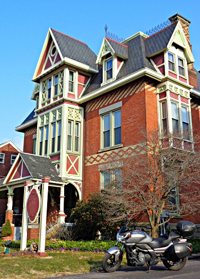 A late blast of spring-defying winter weather turned leg 5 into an almost unbearably long and unseasonably freezng-cold ride, but with some mixture of determination and insanity, I finally reached my destination: Erie, Pennsylvaia, the northern terminus of U.S. 19. My lodging for the next two nights was Spencer House, a beautifully restored, sumptuously furnished three-story Victorian home constructed in 1876. The Captain's Quarters, the top-floor room where I stayed, had its own private Jacuzzi tub. After a hours of riding in the cold, a hot soak with a glass of whiskey was a welcome and appreciated culmination to the day.