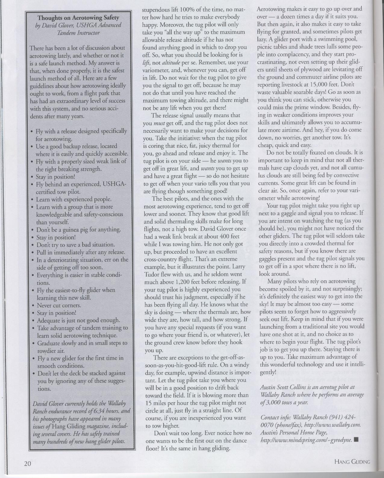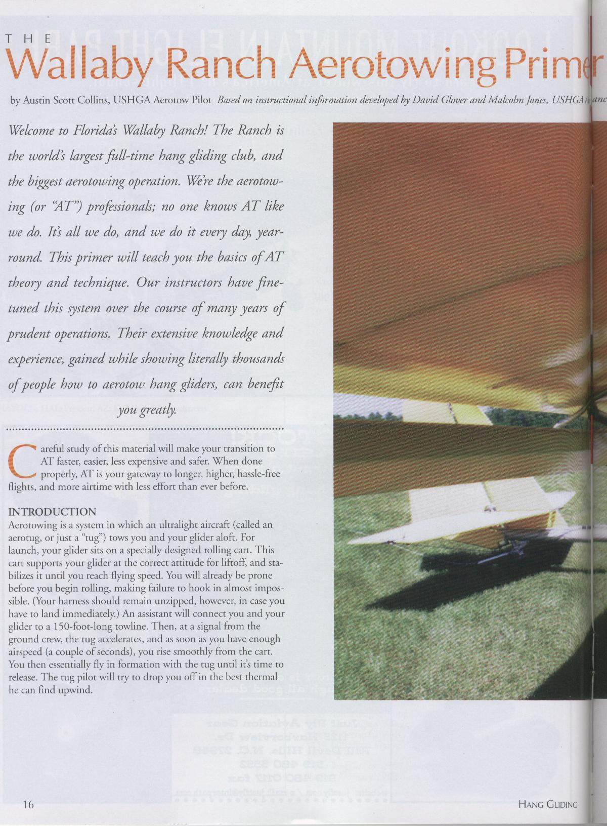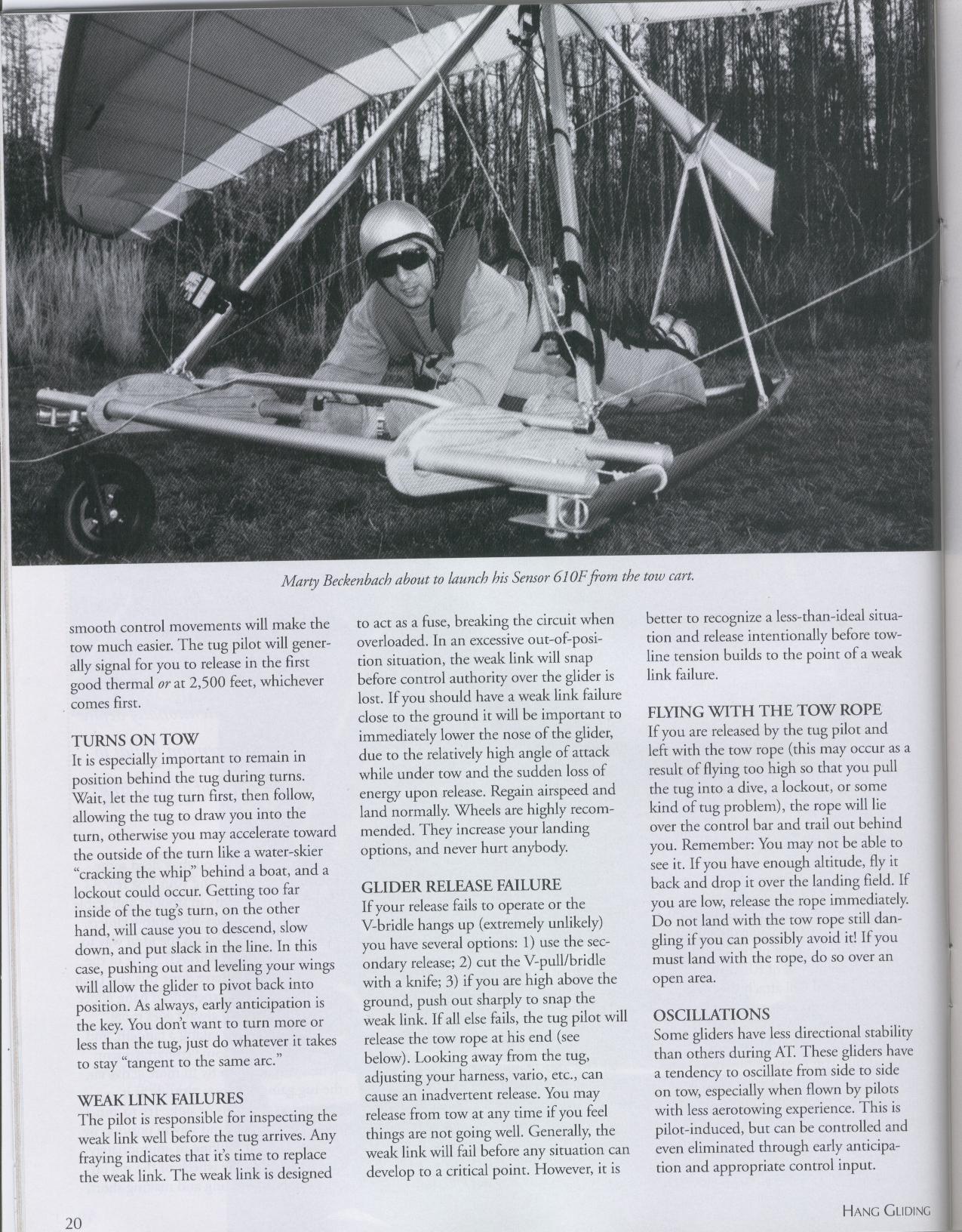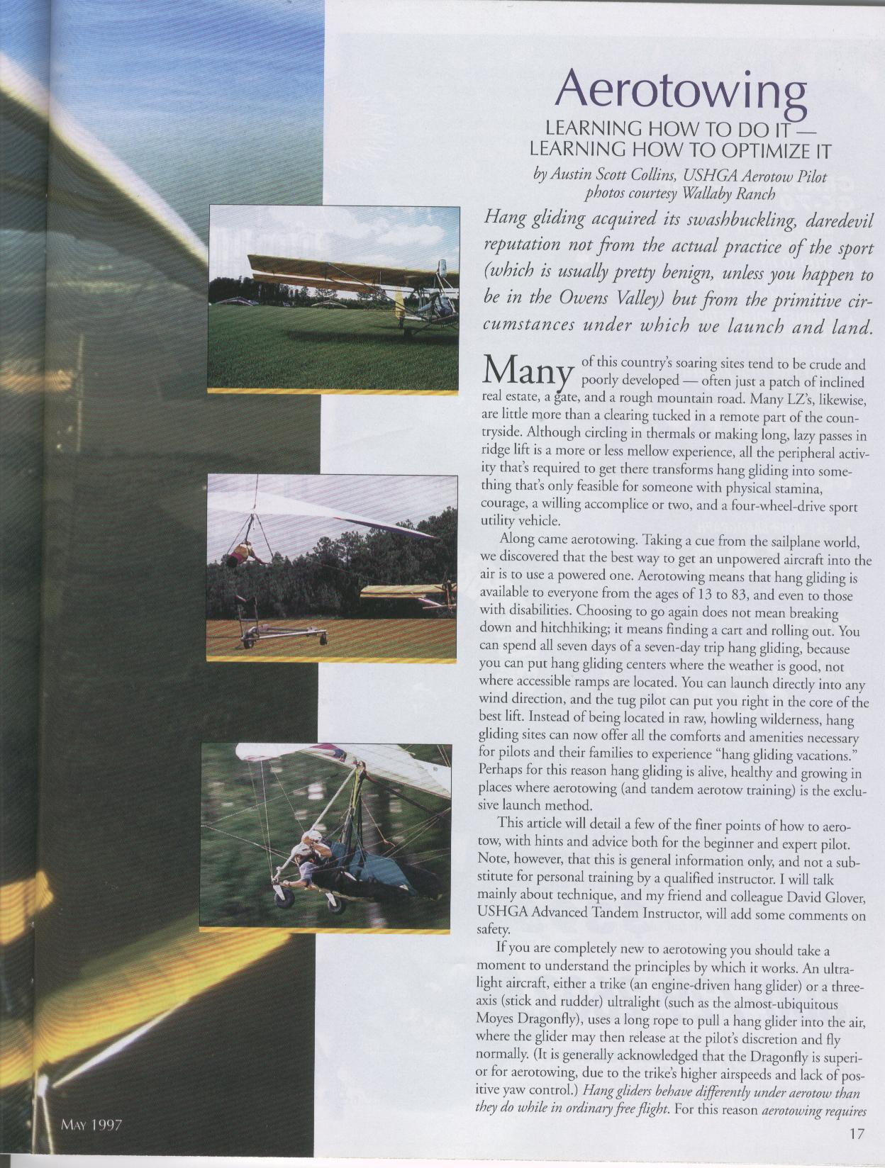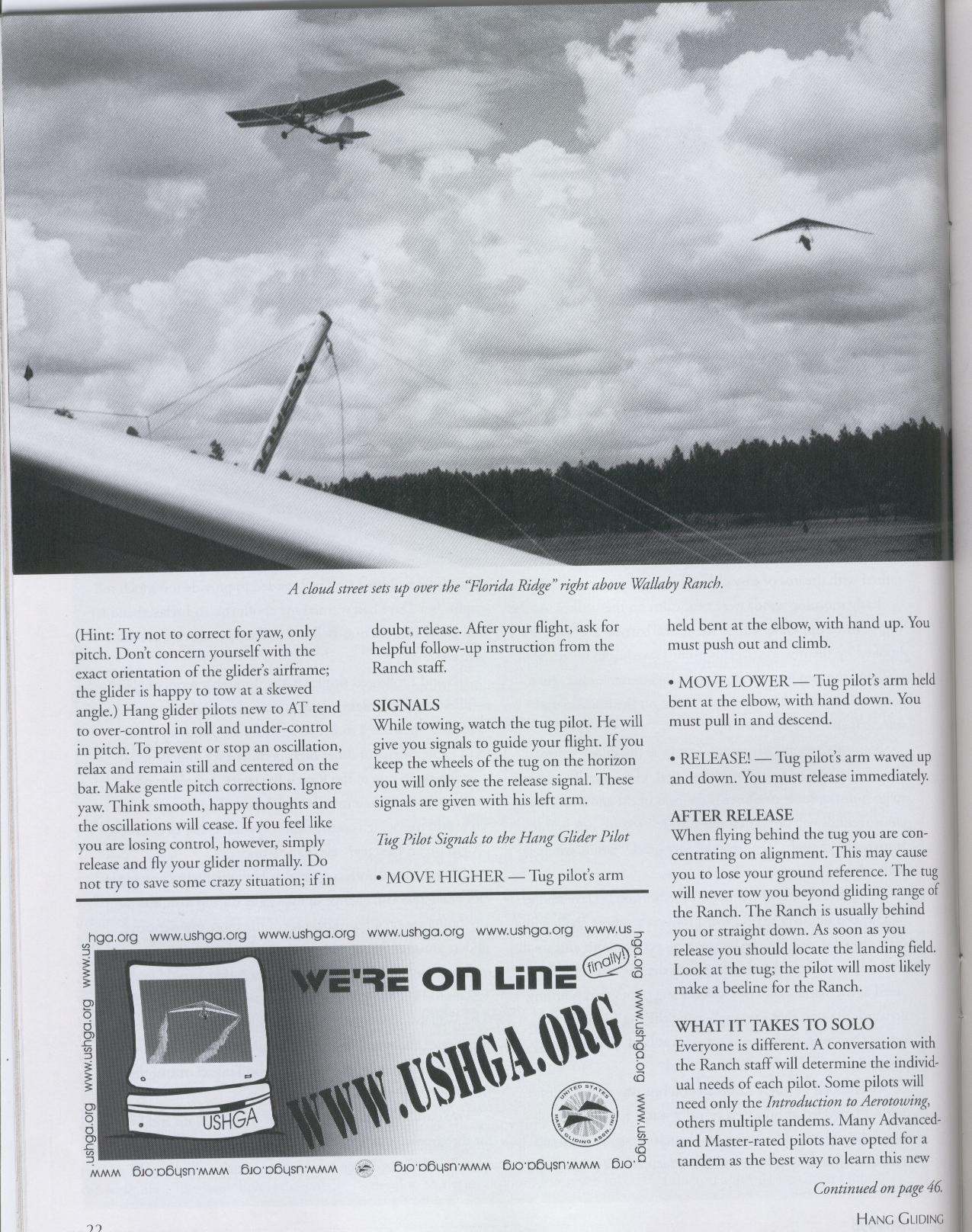 Much more technical in tone, this article was directed at hang glider pilots who were already accomplished at traditional mountain flying and wanted to sample the multiple conveniences of aerotowing, particularly the kind of flatland aerotowing we offered in Florida.