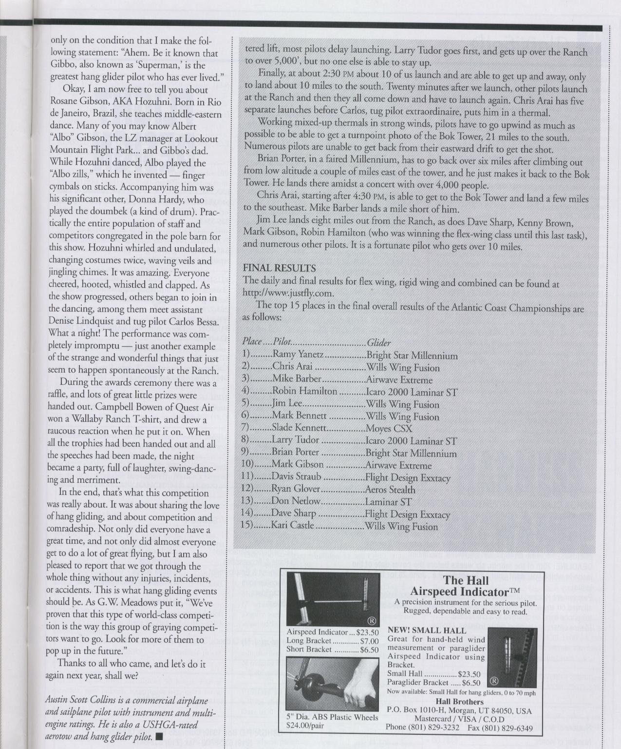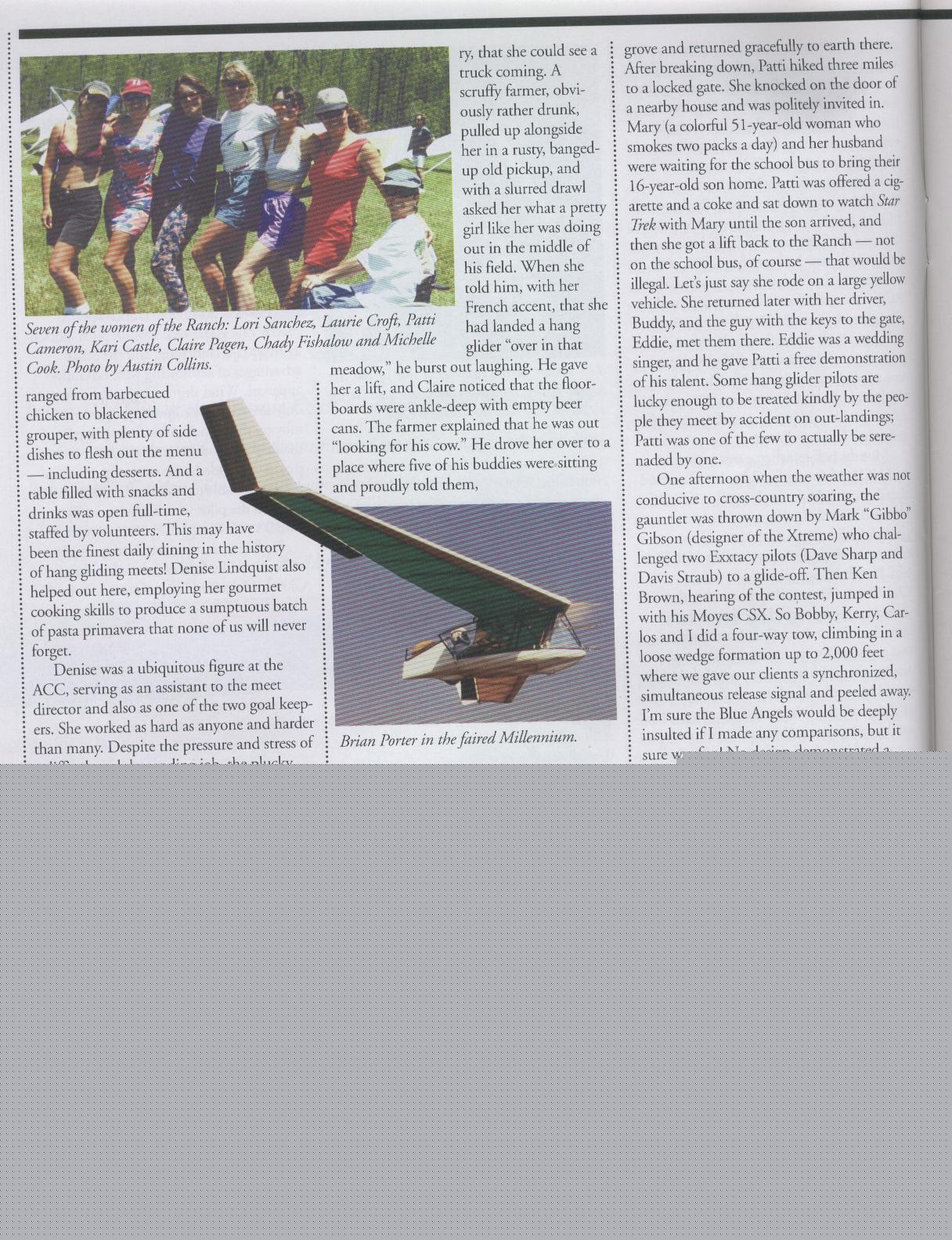 This one is definitely my favorite! Unlike the preceding two, it can be enjoyed by anyone, regardless of whether that person is a hang glider pilot or not. Filled with humor and warm reminiscences, it's much more about the people, stories, culture and lifestyle of the hang gliding scene than it is about the facts and figures of the contest itself. And I took several of the accompanying pictures myself! (Accordingly, as one might expect, it includes a belly dancer and women in bathing suits.)