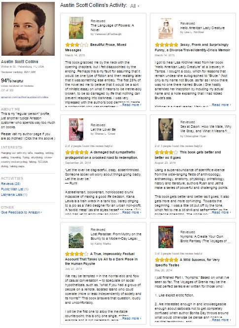 Book reviews #25 (Hello American Lady Creature by Lisa Kirchner) and #26 (The Language of Flowers by Vanessa Diffenbaugh) are now up on Amazon.com. Click the image above (or HERE) to see all 26 reviews.