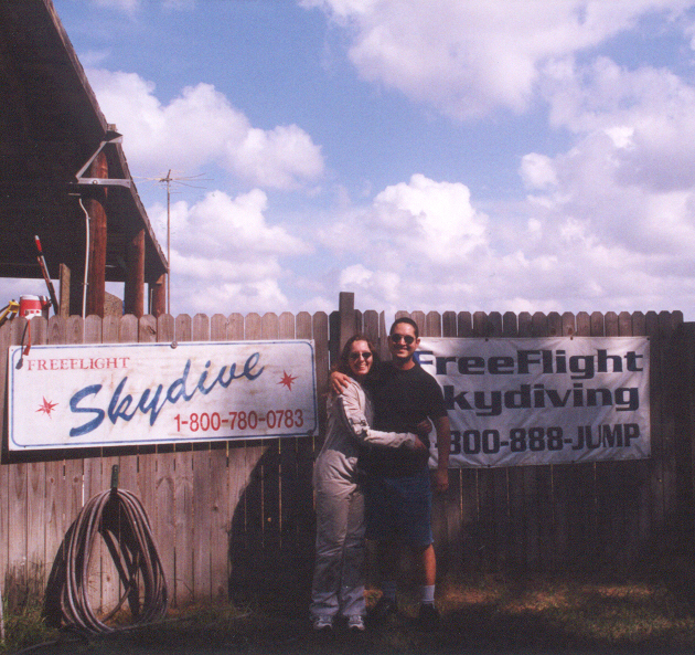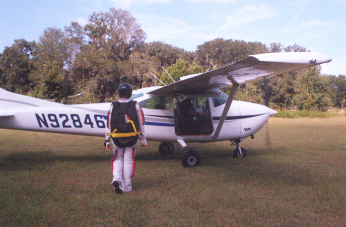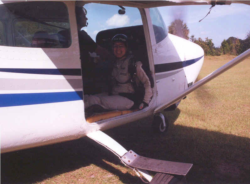 Sam's first skydive was a static line jump from 4,000 feet. (I was flying the jump plane.) The following 11 pictures were all either taken by me or by Frank Arenas, her instructor. Click the thumbnail images below to view them at full size.