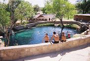 Blue Hole itself is a stunning natural feature: a deep, cold and powerful artesian upwelling out in the middle of a small desert town. It pumps 3,000 gallons of crystal-clear water into a creek every minute. Strangely, it is not very well publicized. You have to know where to find it. I put on my bathing suit and a diving mask and jumped in the chilly basin to cool off. 61 degrees might not sound that cold, but believe me, it takes your breath away at first! As peculiar as it is, there is actually a SCUBA diving school located here in the arid, rocky hills of New Mexico. A beginner class was fumbling around in the spring practicing using their gear for the first time while I was in there swimming.